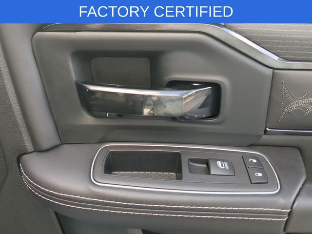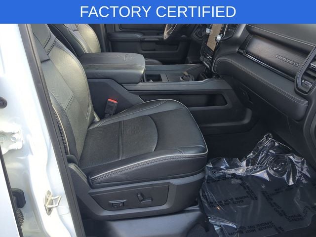 FACTORY CERTIFIED **, CARFAX CERTIFIED **, EXTENDED SERVICE CONTRACT AVAILABLE **, ONE OWNER **, RECENT LOCAL TRADE **, REMAINDER OF FACTORY WARRANTY **, ALL BOOKS AND KEYS, 17 Speaker harman/kardon Premium Sound, 4 Adjustable Cargo Tie-Down Hooks, 4G LTE Wi-Fi Hot Spot, 5th Wheel/Gooseneck Towing Prep Group, Active Noise Control System, Adaptive Cruise Control w/Stop, Adaptive Steering System, Adjustable pedals, Alexa Built-In, AM/FM radio: SiriusXM with 360L, Anti-Spin Differential Rear Axle, Apple CarPlay/Android Auto, Audio memory, Auto High-beam Headlights, Auto-dimming door mirrors, Automatic temperature control, Brake assist, Center Hub, Center Stop Lamp w/Cargo View Camera, Clearance Lamps, Connected Travel & Traffic Services, Connectivity - US/Canada, Dash Pass Thru Wire Circuits, Delay-off headlights, Digital Rearview Mirror, Disassociated Touchscreen Display, Electronic Stability Control, Electronically Controlled Throttle, Front dual zone A/C, Front fog lights, Front Performance Tuned Shock Absorbers, Full Speed Forward Collision Warning Plus, Fully automatic headlights, Global Telematics Box Module (TBM), Google Android Auto, GPS Antenna Input, GPS Navigation, HD Radio, Heated door mirrors, Heated front seats, Heated rear seats, Heated steering wheel, Hill Descent Control, I/P Mounted Auxiliary Switches, Integrated Voice Command w/Bluetooth®, Lane Keep Assist, LED Bed Lighting, Limited Leather Bucket Seats, Limited Level 1 Equipment Group, Luxury Door Trim Panel (CTH), Memory seat, MOPAR Spray In Bedliner, Navigation System, Off Road Package, Off-Road Information Pages, Panic alarm, ParkView Rear Back-Up Camera, Pedal memory, Power Deployable Running Boards, Power driver seat, Power passenger seat, Power steering, Power Sunroof, Power windows, Quick Order Package 2HM Limited, Radio data system, Radio: Uconnect 5 Nav w/12.0 Display, RamBox Cargo Management System, Ramcharger Wireless Charging Pad, Rear Performance Tuned Shock Absorbers, Rear window defroster, Remote keyless entry, Security system, Selectable Tire Fill Alert, SiriusXM w/360L, Split folding rear seat, Steering wheel mounted audio controls, Surround View Camera System, Tachometer, Tilt steering wheel, Tip Start, Traction control, Trailer Reverse Guidance, Trailer Tow Pages, Truck Bed Cargo Divider, Vendor Painted Cargo Box Tracking, Ventilated front seats, Wheels: 20 x 8.0 Satin Carbon w/Chrome Inserts.